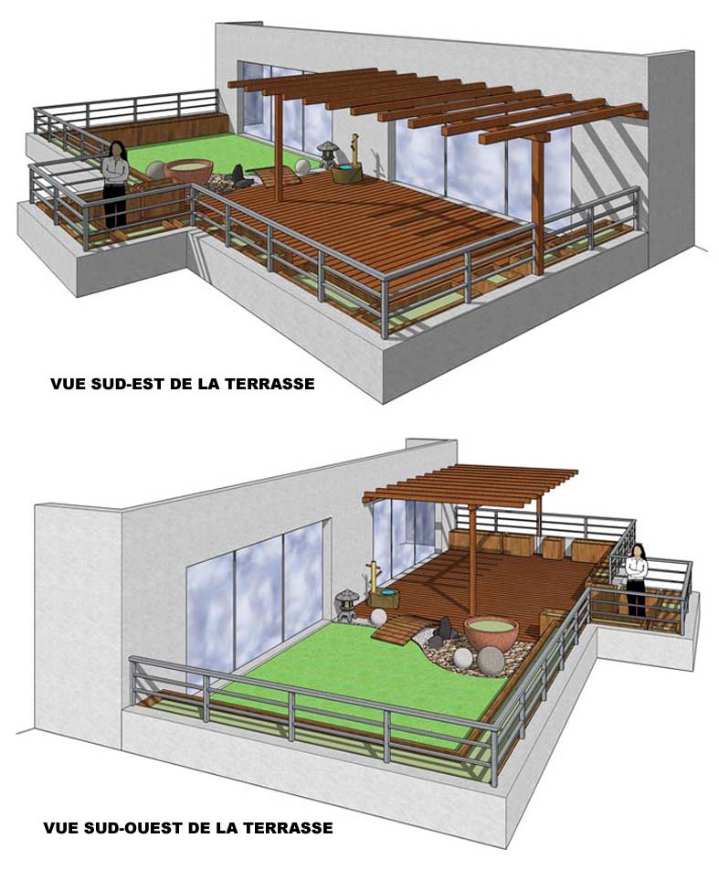 Le concept de base du projet intégre la notion de jardin Japonais associé à un espace de détente